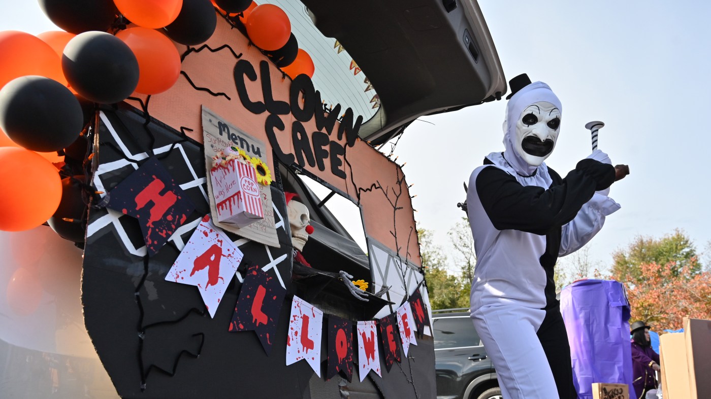 As families navigated through the parking lot, they admired various themed trunk displays, including a notably creative dinosaur setup. Visitors entered the festivities through an inflatable castle, which added an exciting element to their experience.